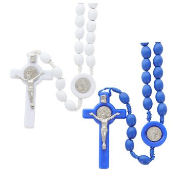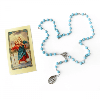 Ce joli chapelet de dévotion de Notre-Dame de Lourdes est composé de grains semi-cristal de couleur bleu, avec une goutte d’eau de Lourdes dans la médaille et croix avec Christ.